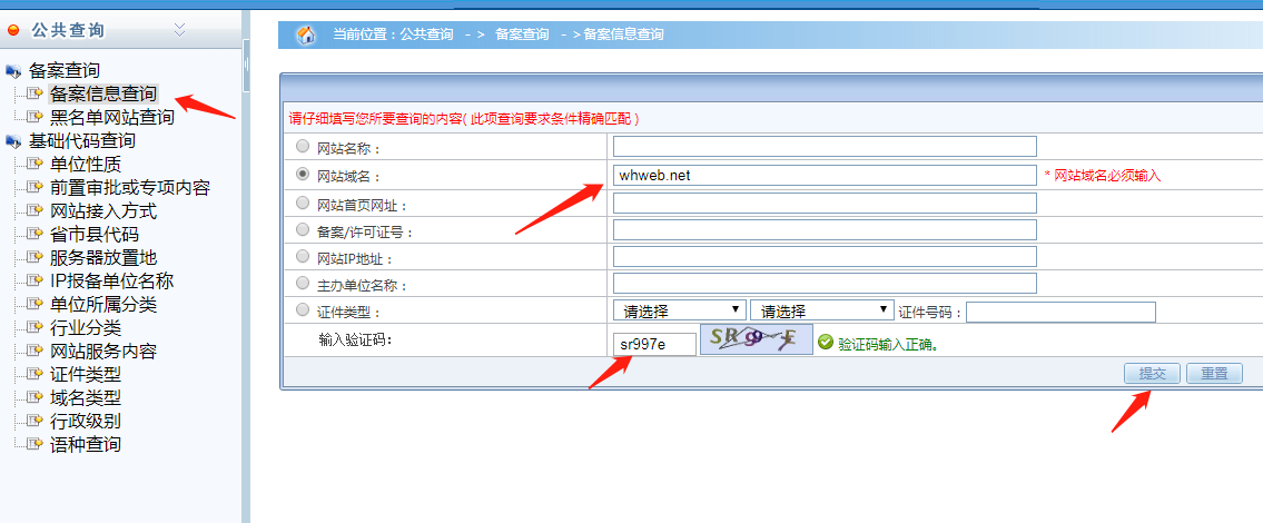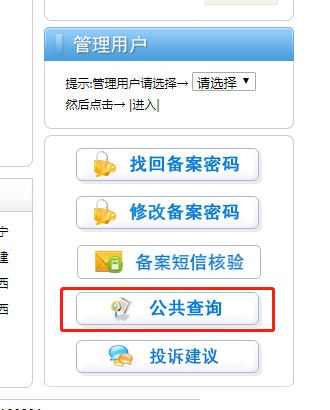 進入公共查詢后選擇備案信息查詢,輸入任意一條信息,在輸入驗證碼,提交便可得到查詢結果。